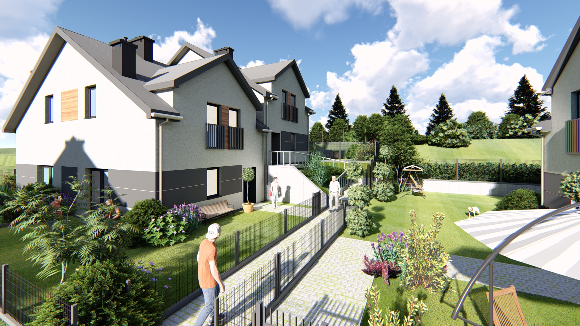 Osiedle Zielone wzgórze składa się z budynku czterolokalowego oraz budynku dwulokalowego.