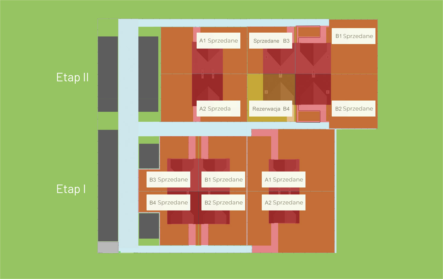 Zaprojektowane zostało 6 lokali mieszkalnych, każdy z nich posiada duży ogródek lokatorski oraz wydzielone dwa miejsca parkingowe.